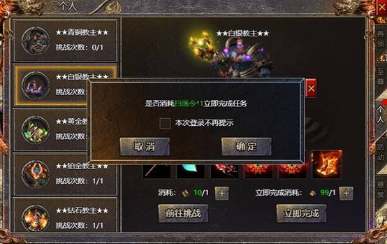 2、玩家可消耗扫荡令直接获取奖励