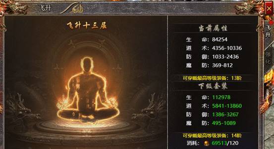 3、玩家飞升等级越高,可以穿戴的飞升装备阶数越高