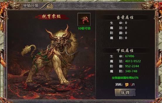 2、玩家可在抚育大师处提高自己的坐骑属性