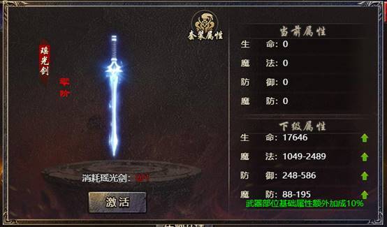 4、激活全部星剑的等阶可以获得稀有buff-万剑归宗