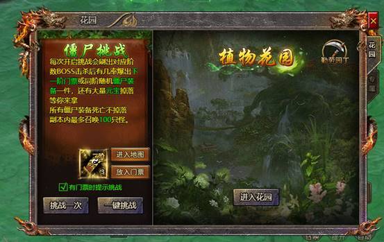 1.开服520天后,玩家可以在僵尸挑战npc处进入花园。