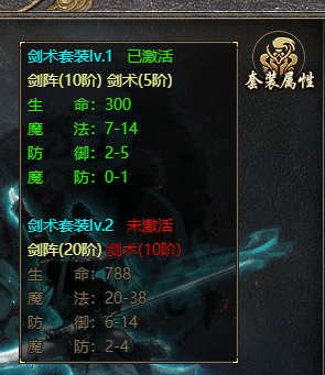 4、剑术可与七星剑阵开锋等级产生套装效果