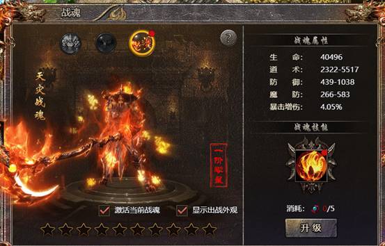 3、使用战魂精元可以提升战魂星数,每满10星可以提升到下一阶