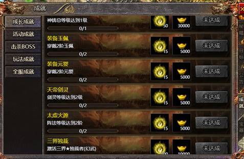 1、玩家70级后开启成就系统与宝器系统