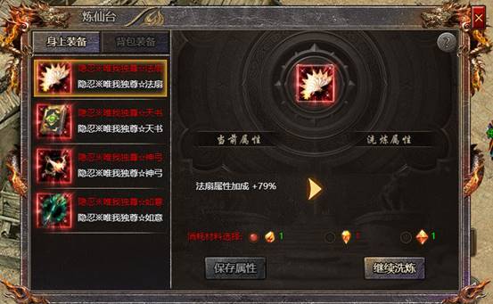 2、玩家可在炼仙台内,选择其中一种洗练石材料进行洗练,品质越高的炼仙石越有机会洗练出更高的属性
