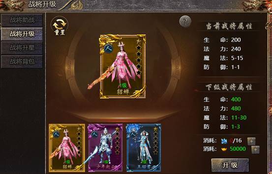 6、玩家可以消耗材料将战将升级