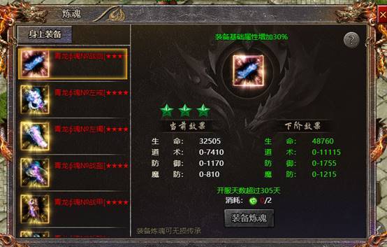 2、玩家可以通过圣兽炼魂强化圣兽魂装