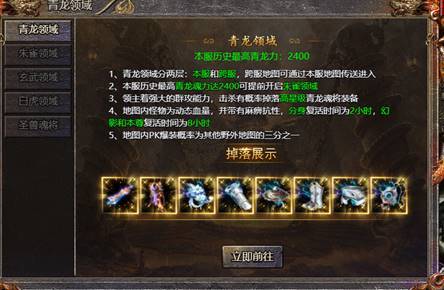 1、青龙领域分两层:本服和跨服,跨服地图可通过本服地图传送进入