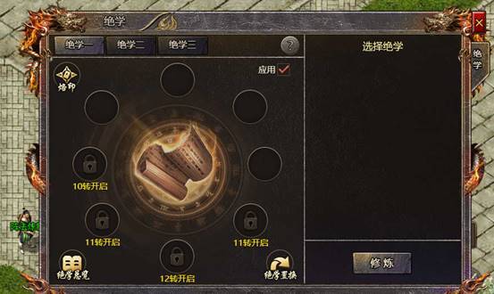 3、修炼低级的绝学不会替换原有的高级的绝学,修炼时随机到已修炼高级的绝学槽位时将会修炼失败并消耗相应道具。