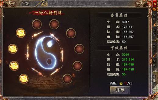 2、玩家达成成就后,可以获得宝器精华,用于升级宝器