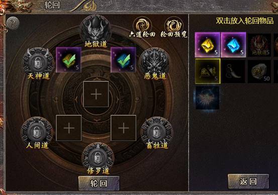 2、将轮回系统升至指定等级后,可以解锁六道系统