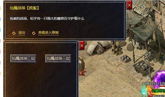 1、开服450天后,玩家盟重-传送员到达禁忌之城,可通过仙魔战场【跨服】进入